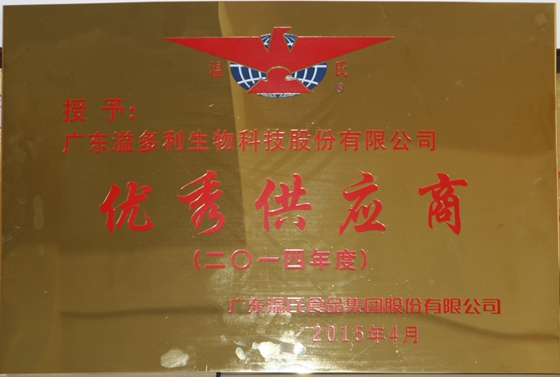 近日,在温氏集团2014年度优秀供应商大会上,华体会体育荣获“优秀供应商”称号。